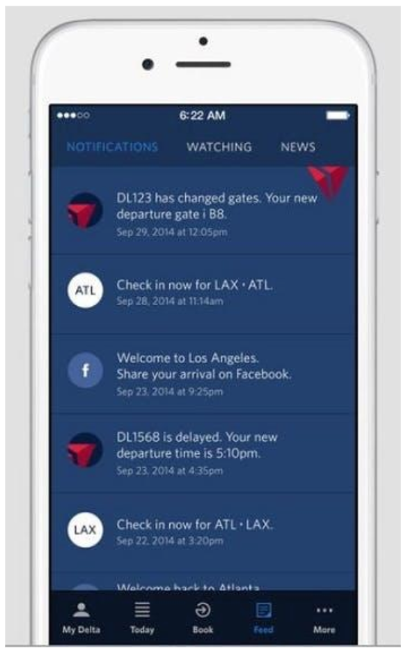 When it comes to push notifications, Delta Airlines has a winning customer experience strategy. Yes, there are standard notifications about upcoming flight details and departure times. Then there are go-the-extra-mile notifications like letting passengers know which carousel their bags can be collected from, and an easy way to share their arrival details via social media.
